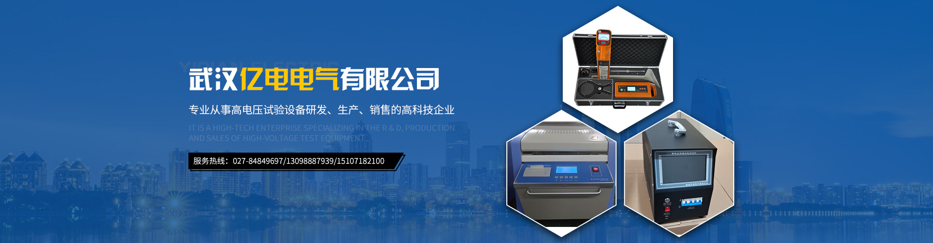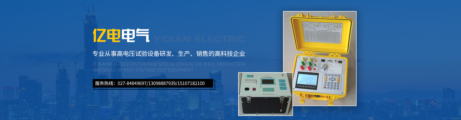 武漢億電電氣有限公司是專業從事試驗變壓器,變頻串聯諧振試驗裝置,直流高壓發生器,變比組別測試儀,直流電阻測試儀等等高電壓試驗設備研發、生產、銷售的高科技企業。