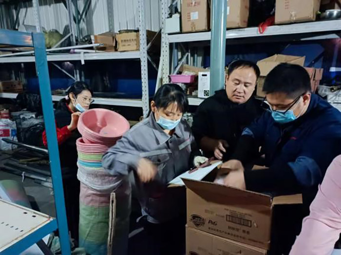 疫情突然來襲,公司第一時間啟動疫情防控應急預案,生產調度部作為生產各類物料和生活基本物資存儲部門快速進入備戰狀態。一面溝通生產車間和供應部,確定庫存儲備量;一面統計各部門駐廠人員,有序為有需要的人員發放生活物資。根據實際情況,公司留下540名干部員工值守,保留了八成的產能,生產調度部部長蔣艷萍統籌安排本部門人員王文芳、龐瑞、唐玉曉、王娟和科員楊文月,準確上報庫存數據,協助各車間進行生產安排,及時收、發物資,耐心為二、三廠區各車間、各部門值守人員發放了牙刷、牙膏、洗發膏、香皂、毛巾、洗臉盆、衛生紙、口罩、墊子和被子等生活所需物資,做到賬目清楚準確。為兩個廠區有序平穩開展生產創造了可能。