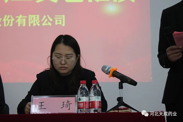 天成藥業常務副總經理王琦宣讀《對生產復方對乙酰氨基酚片表現突出人員表彰決定》