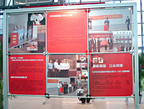 在此次全國(guó)藥品交易會(huì)上,組委會(huì)舉辦了60屆專題回顧活動(dòng)。在“眾志成城,抗震救災(zāi)——用我們的愛心給你們力量”大型圖片展,對(duì)全國(guó)醫(yī)藥企業(yè),在四川汶川地震時(shí)的奉獻(xiàn)愛心活動(dòng)進(jìn)行了報(bào)導(dǎo),并刊登了我公司王振剛總經(jīng)理以及我公司員工捐款活動(dòng)的大幅照片,四川醫(yī)藥工業(yè)協(xié)會(huì)向支持抗震救災(zāi)的藥界同仁,表示衷心感謝和致敬。全國(guó)藥品交易會(huì)組委會(huì)表示,為了支持災(zāi)區(qū)重建,全國(guó)藥品交易會(huì)將在四川連續(xù)舉辦三次。