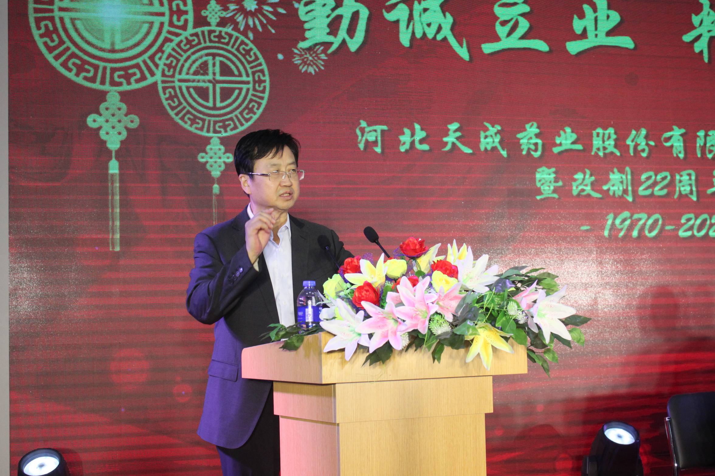 王總首先向一直以來關心、愛護我們的各級領導、社會各界人士、向與天成同舟共濟的工商客戶、向為天成藥業做出貢獻的全體離退休員工和在一線的全體天成人及員工家屬致以了誠摯的祝福和衷心的感謝。