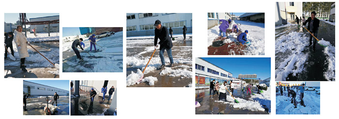 為了避免大雪對生產(chǎn)造成影響,車間主任吳俊川第一時間組織帶領(lǐng)我們掃雪。大家積極地投入到鏟雪行動中。雖然雪積得比就厚,天氣比較冷,但這一點(diǎn)也沒有影響我們鏟雪的熱情和工作放率,作為一名員工,掃雪是貴任,更是義務(wù)。潔白的積雪映照著一張張因勞動而泛紅的臉龐,大家樂在其中。不一會兒,輸液一車間有人出來了,儲運(yùn)部的人員也出來了,辦公樓上后勤人員也出來掃雪了,掃雪隊(duì)伍越來越大,一時間整個廠區(qū)主要干道和物流通道都是掃雪的人,形成了一道靚麗的風(fēng)景線。